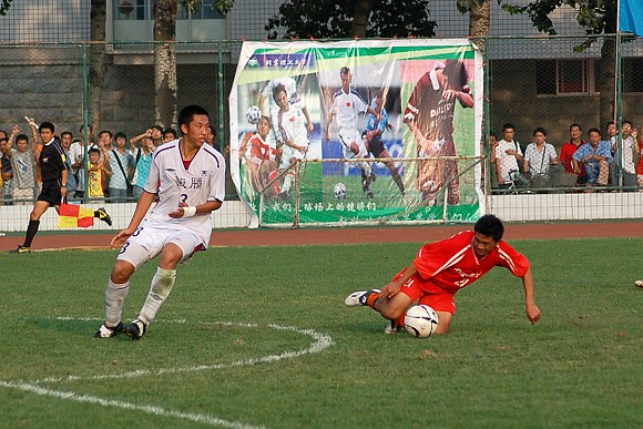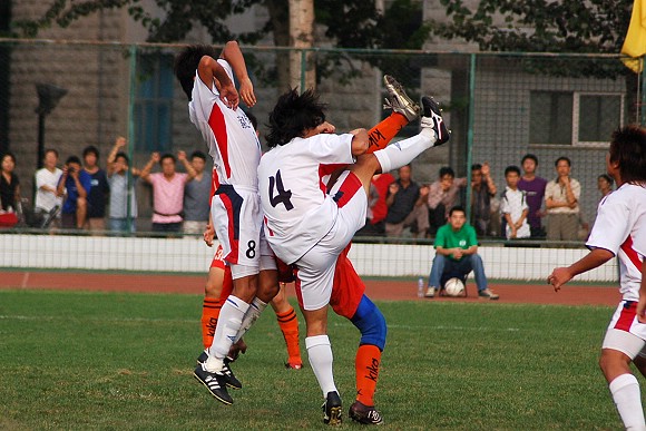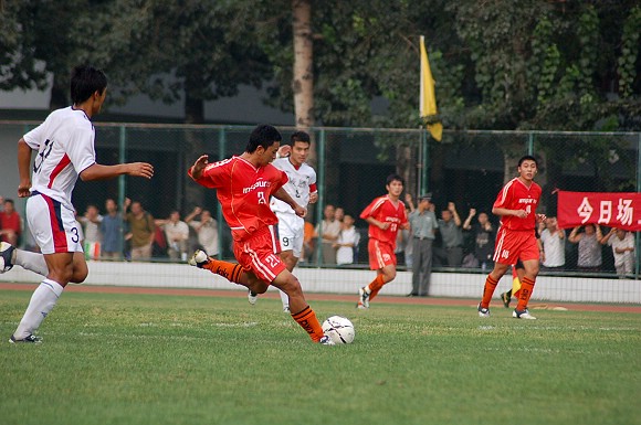 8月26日下午4点,我校足球队迎来了2006全国足球乙级联赛下半程的第二场比赛,在主场迎战目前排名北方赛区第四的哈药毅腾队,最终对手在裁判的“关照”下与我方以0:0战平,双方各取1分。在今年上半程的首场比赛中,我校足球队在哈尔滨客场曾以2:0战胜对手(点击进入相关链接),而对手踢法粗野,观众缺乏文明观赛现象(点击进入相关链接)也曾引起媒体界的轩然大波。此场比赛之前,哈药毅滕队以5胜3平2负共积18分的成绩名列北方赛区第四位,而我校足球队在少赛一轮的情况下,以6胜2平1负积20分的成绩名列北方赛区榜首,因此,赛前金志扬总教练要求队员对此场比赛志在必得。