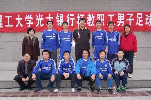 理学院教职工足球队全体成员与校领导合影留念。