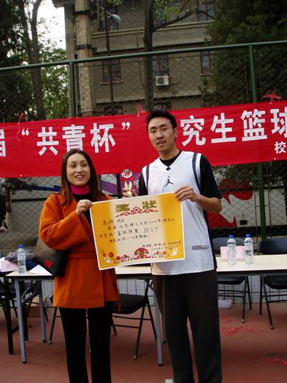 校园委副书记申玉老师为我院李炜同学颁发本届联赛MVP证书。