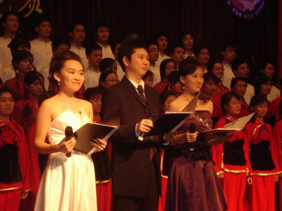 在一阵阵气势如潮水般汹涌的掌声中管理与经济学院06级参赛选手缓缓走上舞台,准备发出06年歌咏比赛的第一句嘹亮歌声。通过我院各级领导以及学院学生会干部的精心选拔,在经历了将近一个月的精心准备下,80名衣着整齐、意气风发的06级管理与经济学院学子昂首屹立于今晚属于全体06级新生的舞台上,用他们滚烫的赤子之心、融入了对先烈们无限的敬仰之情的、宛如天籁并且婉转悠扬的歌声,去诠释他们对老一辈无产阶级革命先烈的敬仰之情、对71年前的学子们的无限崇敬之情。