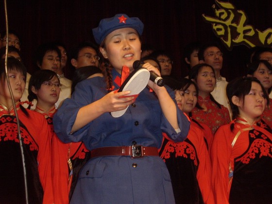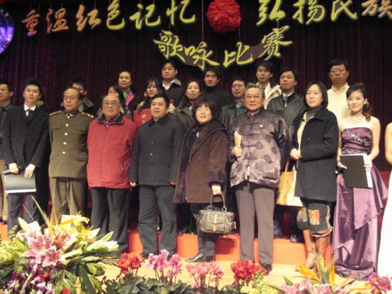 我院的参赛曲目是长征组歌的第一首《告别》以及一首精心挑选的经典革命歌曲《红军鞋》,当晚,06级管理与经济学院新生以他们动情的演唱博得了在场观众一阵又一阵的掌声,欢呼声、掌声连成一片,在中教报告厅回响,久久不能散去……在经过了接连13个学院的精彩演唱后,在评委们一番严密的商讨以及谨慎的评分后,我院以绝对优势取得了比赛的冠军,在时隔一年之后,终于如愿重新回到了冠军的领奖台上。主持人一一宣读了各个学院的所获奖项,并由校领导、评为代表一一为获奖单位颁发奖项,最后校领导与我院各级领导和参赛同学、学生干部合影留念……