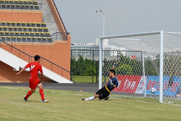 上半场比赛结束前,王绪单刀突破对方防线,将比分锁定在5:0。