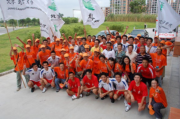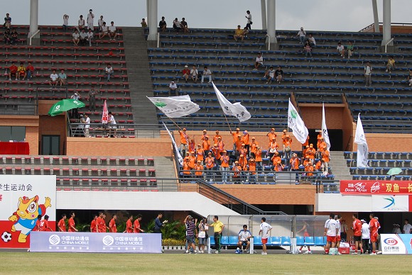 ob真人珠海学院的同学们专程从珠海赶来为母校足球队加油助威!