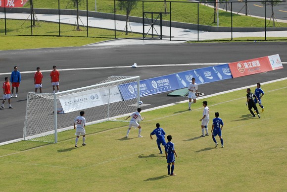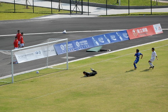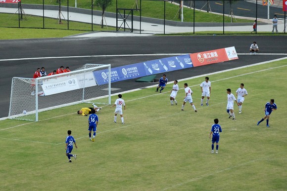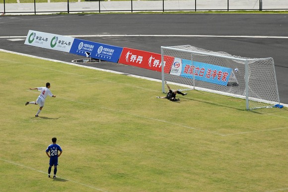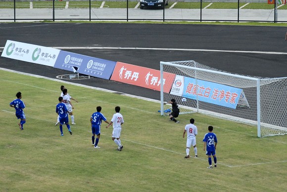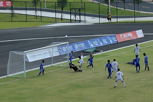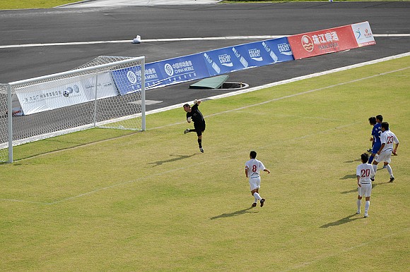 上半场比赛结束之前,ob真人竞猜再次获得一次角球机会,对方守门员出击抢第一点火并未得到皮球,已经冲到门前的ob真人竞猜队员武方虎接队员的头球过渡后轻松把球顶入球门,将上半场的比分锁定在5:0。这与第一场对阵陕西队的情况如出一辙,似乎胜局已经基本锁定。
