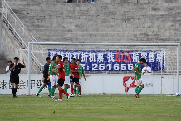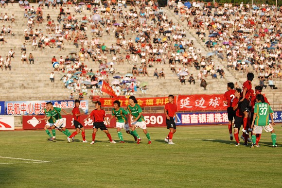 上半场第37分钟,久攻不下的延边队遭到了北京爱国者大学生队的当头一棒。延边队员徐赫哲在禁区前沿对爱国者大学生队的金俊植的犯规送给了对手一个位置极佳直接任意球。
