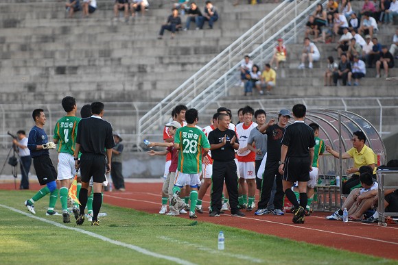 进入下半场,北京爱国者大学生队体力渐渐不支,几乎难以攻过半场,延边队的进攻也打得流畅起来。郑林国在左边路的突破非常犀利,多次创造机会。