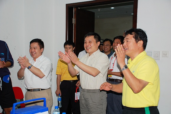 9月2日下午,中甲联赛第18轮北京爱国者队VS上海七斗星的比赛在我校东操场举行,刚刚接任ob真人校长职务的胡海岩教授在党委副书记、副校长杨宾的陪同下观看了此场精彩的比赛。