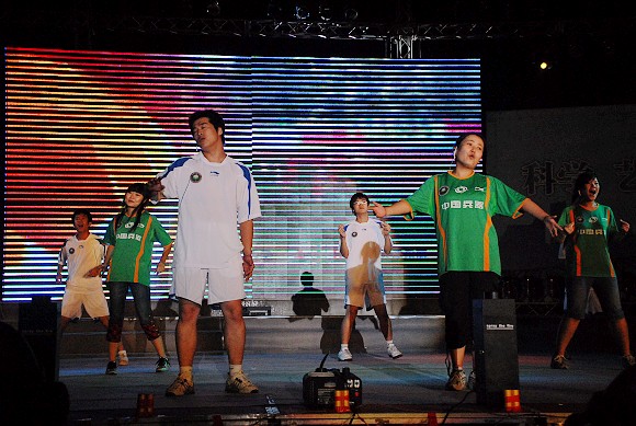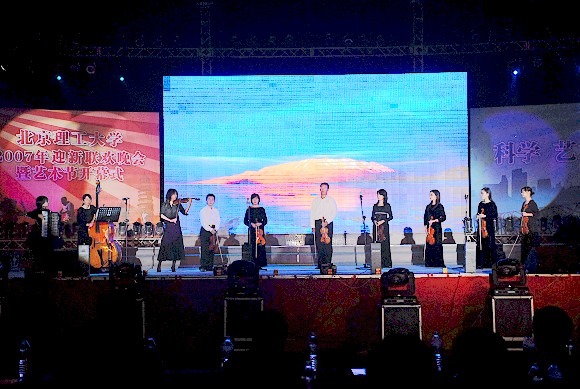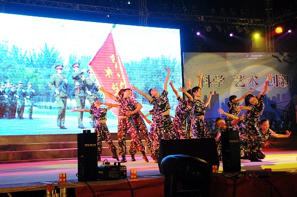 由校工会教师王丽静表演的女生独唱:《中国大舞台》