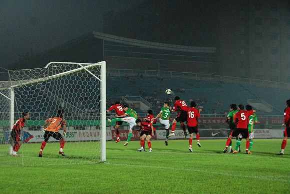 第78分钟,宏登队贾伟假摔两黄变一红被裁判罚下,随后队长赵阔上前理论又被裁判掏出红牌,此后宏登以9人应战。第86分钟宏登队曲鹏主罚任意球高出横梁。