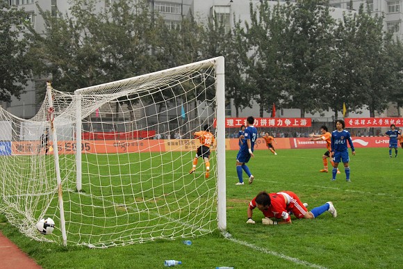 北京爱国者队8号袁微将角球开出,皮球直接转向后点,对方门将和后卫自己撞在了一起,北京爱国者队20号武方虎拿球调整后面对空门将球打飞,错过了再次将比分超出的机会。