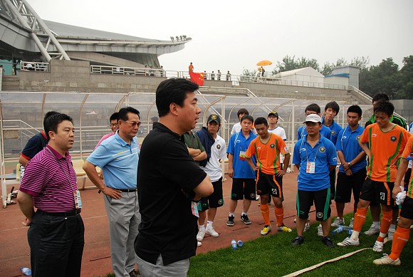 第80分钟,由于对裁判的判罚不满,烟台毅腾队的主教练王军直接被罚上看台。