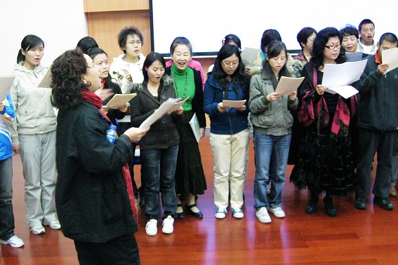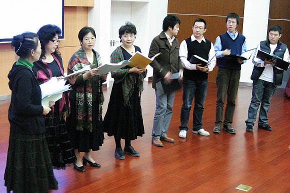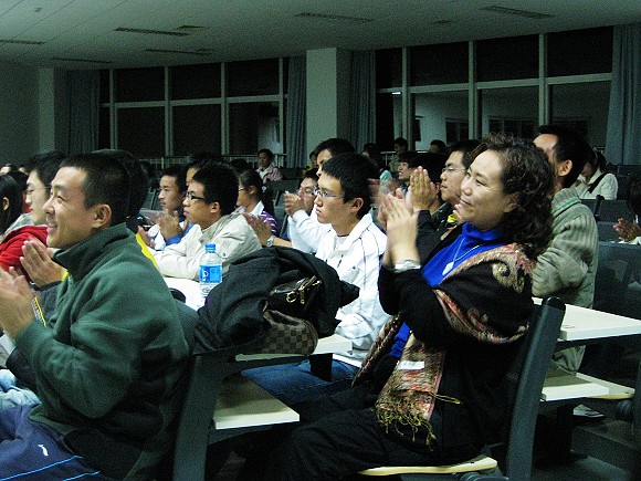 音乐会接近尾声时,与会者饶有兴趣的与演员共同演唱《茉莉花》、《同一首歌》,把晚会推向了高潮。有200余名同学观赏了这场讲座式音乐会。