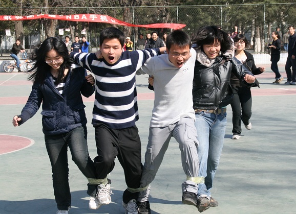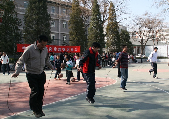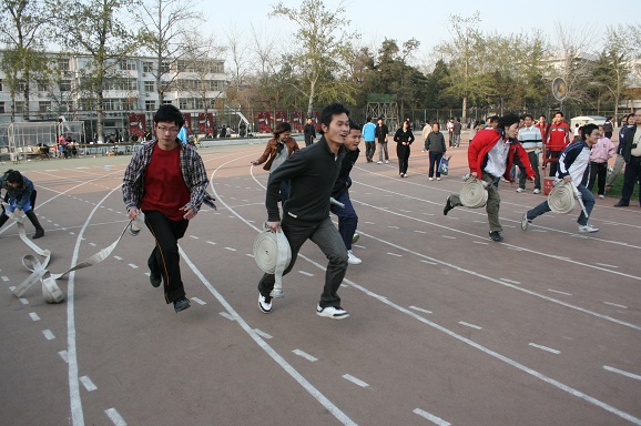 而在北篮球场举行的研究生趣味运动会也如火如荼,研究生们积极参与各项比赛,在紧张的科研工作之余也体验了一把运动的乐趣。