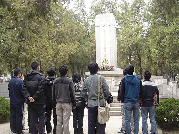 春风已解千层雪;后辈难忘先烈恩。当我们走进八宝山革命公墓时,一种凝重的气氛油然而生。安详、宁静,一座座墓碑刻画着一个个平凡的人物;庄严、肃穆,一篇篇碑文诉说着一件件不平凡的历史。当我们再次回首那逝去的往事,每个人的心情都久久不能平静。