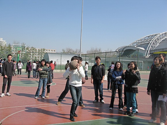 男女集体投篮,深受同学们喜欢的项目,不管是男生还女生,我们有共同的爱好,王琳琳同学的投篮吸引着身边同学的关注与呐喊。