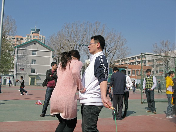 男女2人混合跳绳,将活动推向了高潮,同学之间变得密切,合作,我们的大学更需要这样的默契与团结。