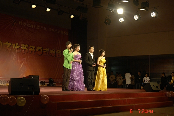 莅临晚会现场的学校领导有校团委书记徐强老师、副书记衡靖老师和张巍老师,校学生会主席张文博、校研究会副主席尚松田和来自各兄弟院校的社团联合会和优秀社团的负责人。