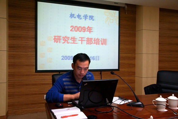 为了适应新的形势,提高学生干部的整体素质, 2009年5月16日,机电学院举行了研究生学生干部培训大会。机电学院分党委副书记、副院长杨瑞伟,学院研工委陈军、解海宁,机电学院研究生会主席、各部门部长及干事,07、08级硕士、博士各个班级的班干部参加了会议。