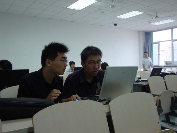 比赛于10点正式开始,本次比赛项目为国际较流行的对弈项目——六子棋,比赛赛制为双循环赛制,经过紧张激烈的两个多小时的比赛,来自软件学院2007级的 “蔚蓝”队以全胜的战绩夺得了一等奖,“六字双破”队,“InsomniA”队分别获得了二等奖; “itisme”队和“sqrt3”队分别获得了三等奖。