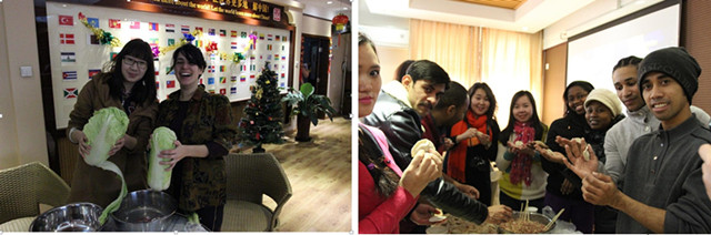 包饺子是中国年夜饭的传统活动,学生们抢着和老师们一起洗菜、和面、拌馅儿,和老师们学着包饺子,他们中很多人都是第一次包,包出的饺子也像模像样。他们兴奋地展示自己亲手包的饺子,体味着中国人欢欢喜喜、团团圆圆过大年的心情。饺子出锅后,老师和同学们一起,围坐在电视机前,一边观看2013年春晚的精彩节目,一边享用着自己的劳动果实,一边畅谈着过去一年的收获以及对来年的美好祝愿,非常开心。通过参加这些丰富多彩的活动,使得在ob真人竞猜的外国留学生们深切地感受了中国年。