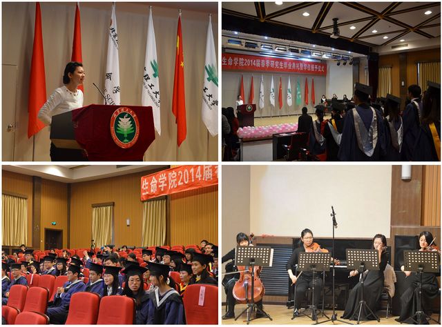 在优美柔和的现场伴奏下,毕业生们身着学位服入场,欢声笑语,满怀信心,迎接着即将开始的人生之路。在庄严的国歌奏响后,学院副书记、副院长刘晓俏宣布生命学院2014届春季毕业研究生毕业典礼正式开始。