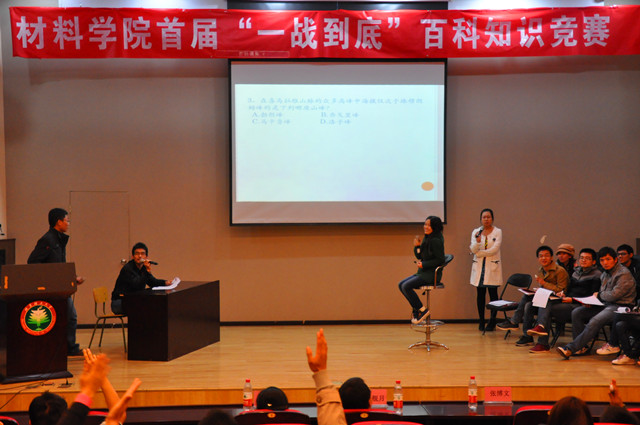 2013年11月3号18:00,材料学院首届“一战到底”百科知识竞赛在七号楼报告厅拉开帷幕,此次活动由材料学院研究生会主办,材料学院党...