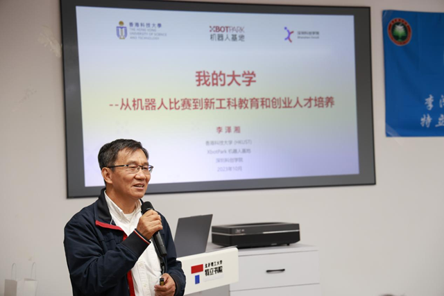 李泽湘以“我的大学”为题为学生们讲授了一堂生动的双创第一课。他从自己的学习和工作经历、机器人基地建设、新制造与新工科教育、端到端科创生态体系建设多维度开拓学生学习和创新视野,鼓励同学们根植祖国、面向世界,挖掘真需求,探寻真问题,研究真学问,练就真本事,取得创新创业卓越成绩。