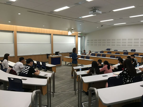 在课程学习模块中,参训学生在美国犹他州立大学亨兹曼商学院进行为期5天的课程学习。上午为语言课程学习,下午为经济专业课程学习。语言课程充分考虑到中国学生语言薄弱的特点,每堂课均挑选了多名美国本土高年级学生作为语伴,在愉快宽松的环境中帮助参训学生实现语言的有效强化训练,课程实践性强,学员在课程中不仅掌握了必要的英语语言知识、提升了英语运用能力,更和美国同学结下了深厚友谊。经济专业课程由亨兹曼商学院Dwight Israelsen教授担任主讲,Israelsen教授以经济学基本定义及原理为切入点,深入浅出的为参训学生讲授经济学课程,帮助学员对经济学的专业特点及专业知识体系有所了解。