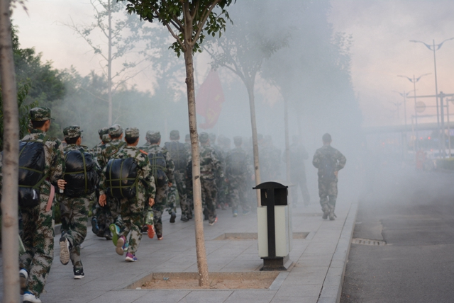 拉练围绕良乡校区内外进行,历时三个小时,全体参训学员装备整齐,步伐一致,口号嘹亮,组织有序。为模拟实战情况,增强训练效果,军训旅在行军途中燃放烟雾弹,同学们在各连指导员统一指挥下,迅速通过烟雾区。在营教导员及连指导员的鼓励下,全体参训学员们克服了重重困难,圆满地完成了全程14公里的拉练任务。