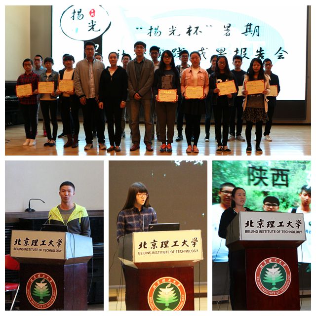 按照校团委社会实践相关要求,光电学院“扬光杯”暑期社会实践活动从2016年5月启动,光电学院共有101支团队通过校团委审核,获得立项。经过各团队的精心策划、认真落实,最终有84支团队提交实践成果。为表彰先进,分享社会实践成果,提升大学生实践教育效果,10月17日,光电学院在中关村校区七号楼报告厅举办了“扬光杯”暑期社会实践成果报告会。