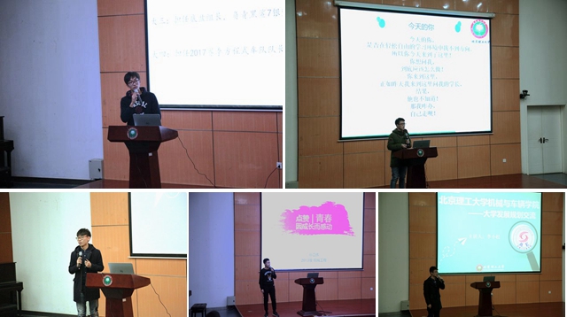主论坛及开幕式于12月12日在良乡校区综合教学楼报告厅举行,报告厅内座无虚席。活动邀请优秀科创车队代表李桐、徐特立奖学金获得者李小松、学生干部代表宋洛、青春榜样孙嘉伟以及学习优秀代表任棚等五位学生代表分享各自的大学生活。从不同角度鼓励低年级学生树立自信心,合理自我定位、做好规划,积极主动地挖掘和利用校内外资源与平台,全面促进、提升个人的成长与发展。