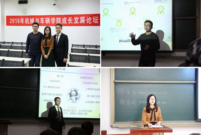 至此,2016年机械与车辆学院第三届学生成长发展论坛圆满落幕。本次活动从学习规划、就业指导、保研、考研、留学等多个同学们所关注的话题进行讲解,通过此次活动,同学们对于大学的学习生活有了初步的认识与规划,对于日后众多的毕业去向有了整体的把握,建立起自己的目标,并不断充实自己,为之奋斗。作为学院“一年级工程”的重要组成部分,学生成长发展论坛今年已经是第三届,三年来,学院坚持以论坛的形式对学生的生涯规划与成长发展作指导,均起到了非常好的效果。学院会继续坚持打造学生个性化发展的支撑平台,为学院高素质个性化人才培养目标的实现提供助力。