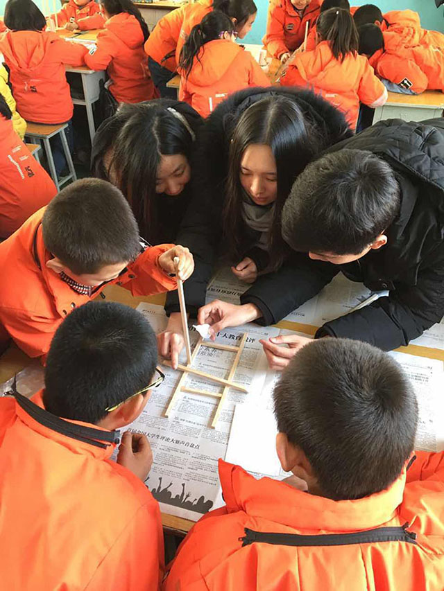 下午,学院一行人来到横泉小学,与当地学生进行了交流互动。恰逢ob真人竞猜的研究生支教团队正在授课,在征得他们同意后国际教育学院学生也参与到了课堂中来,与学生一起完成投石机的制作和比赛。课后,实践团成员与横泉小学的学生们一起做游戏,并将事先准备的文具及糖果等当作奖励赠送他们。