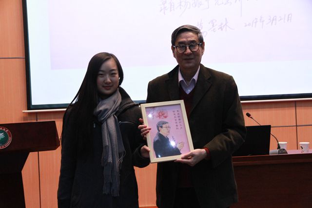 现场学生也向葛院士赠送了精心设计的纪念品——葛墨林先生画像。“黑发积雪织日月,粉笔无言写春秋”,是对葛院士教书育人,潜心学术的真实写照。