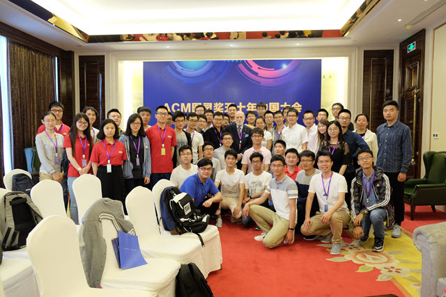 5月14日晚上,参赛团队受邀出席“ACM图灵奖五十年中国大会庆祝晚宴”及颁奖典礼。Vinton Cerf博士和教育部科技发展中心李志民主任一起为获奖团队颁奖。