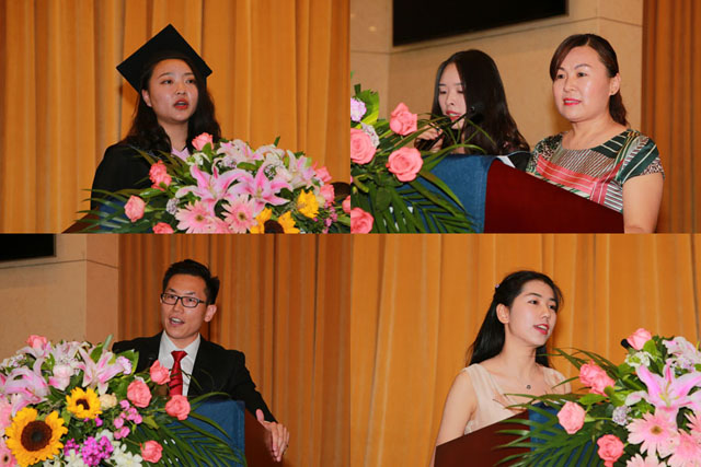 郝爱民女士代表毕业生家长发言,她诚挚地感谢ob真人竞猜和美国犹他州立大学,在双方共同优质教育的培养下,帮助孩子从懵懂少年成长为思想独立,学有所成,成为具有国际化视野的人才。