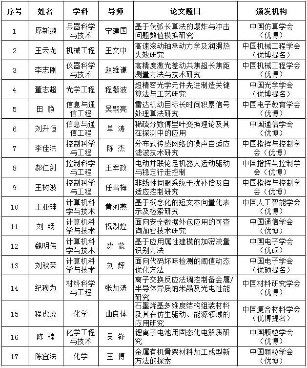 2018年获全国学会优秀学位论文名单(截止9月19日)