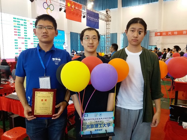 中国大学生程序设计竞赛(China Collegiate Programming Contest / CCPC)是由中国大学生程序设计竞赛组委会组织的年度性赛事,旨在通过竞赛来提高和展示中国大学生程序设计创新与解决实际问题的能力,发现优秀的计算机人才,引领并促进中国高校程序设计教学改革与人才培养。本次桂林站的比赛由桂林电子科技大学承办,吸引了来自全国顶尖高校的200余支队伍参加。我校ACM俱乐部派出的“乖乖站好”队稳扎稳打,排名稳步上升,最终不负众望,以解出5道赛题的成绩夺得金牌。这也是本年度ACM俱乐部参与中国大学生程序设计竞赛夺得的第一枚金牌,参与大学生程序设计类竞赛夺得的第四枚金牌。