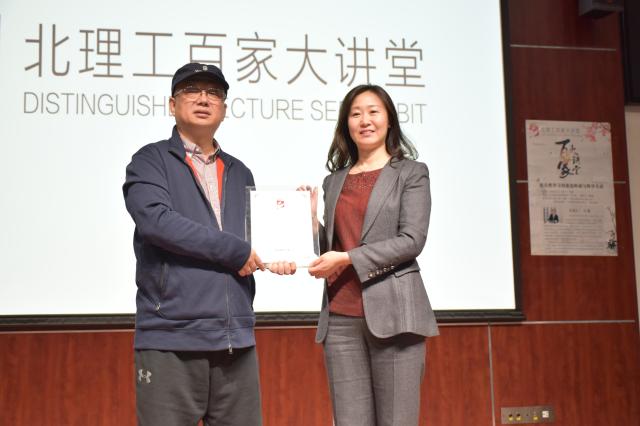 讲座最后,包丽颖向江雷院士颁发了ob真人“百家大讲堂”纪念证书并赠送了镌刻有ob真人竞猜学生为江雷院士创作的《踏莎行•赠江雷院士》的竹简作为纪念。