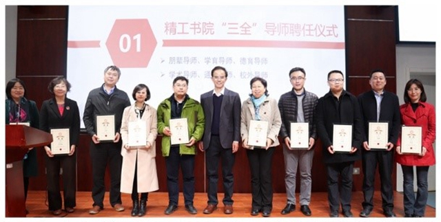 精工书院自成立之初,按照学校关于“三全”导师选聘工作要求,招募选拔高年级优秀本研学生组成朋辈导师团,组织“朋辈导师-社区班级”双选会,开展各类朋辈教育引导;选聘专业教师担任学育导师,举办“师言学语COFFEE TIME”等讨论沙龙活动,开展思想引领、人文关怀、学业指导和学术引领等工作;德育导师由教务部、教学运行与考务中心、党委宣传部、校友会工作办公室、前沿交叉科学研究院等部门处级干部担任,对学生进行思想引导与发展指导;在对应专业学院中选聘知名学者担任学术导师,面向学生开展专业引导与学涯规划指导工作;聘请中文系教师及优秀校友分别担任通识导师和校外导师,通过“精·思”大讲堂等活动,开展通识教育与博雅教育,在学生中普及跨学科知识和思维方式,培育学生的人文情怀和科学精神。“三全”导师的配备,将有助于使精工书院学子在校园生活、学术发展、人生规划等多层面、多角度获得有力有效的教育引导,培养高素质、宽视野、强潜力、大胸怀的优良品质,实现自由而全面的发展。