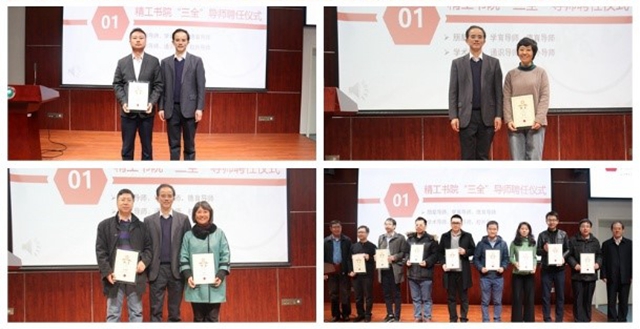 在“三全”导师聘任仪式上,与会人员先后为朋辈导师、学育导师、德育导师、学术导师、通识导师与校外导师六类导师颁发聘书。