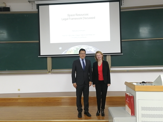 11月5日,Hofmann教授就“空间资源”的相关问题进行了讲授,介绍了卢森堡有关矿产资源勘探项目的立法情况,并梳理了美国和卢森堡的国内法关于空间法律的设置。