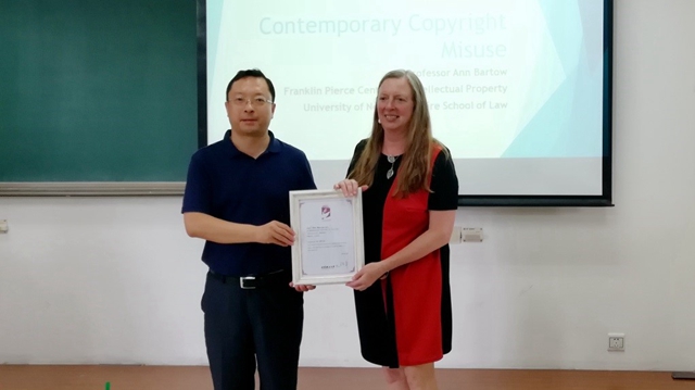 最后,郭德忠为ANN BARTOW教授颁发了ob真人竞猜百家大讲堂授课证书。本次讲座使学生充分了解了美国版权制度和版权滥用原则,扩充了学生的知识储备,进一步打开了国际视野。同时,ANN BARTOW教授的案例教学方式收获的良好效果,也对我校法学教育带来了有益的启示,今后将更加注重实证研究和学生法律思维的培养。