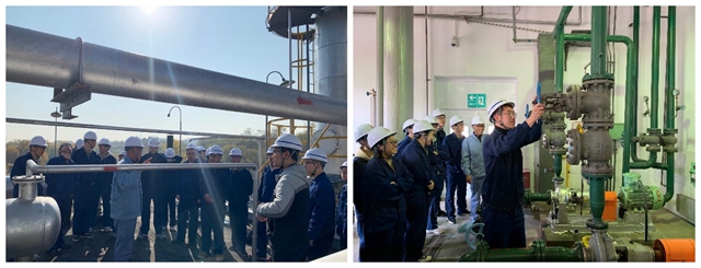 专业实习的重头戏是进入厂房实际操作整套对二甲苯工业生产装置。11月4日,大家首先熟悉了训练装置中压缩泵、反应器加热炉、精馏塔、换热器、离心泵等部件的工作方式与操作规程。随后,同学们分为两组进行实操训练。一组同学在中控室,通过DCS系统控制反应的进料、升温、出料等过程,另一组同学在装置现场,根据中控室指令,操作不同的泵机,并负责加热炉的点火、空冷器的启动等工作,在整个生产过程中还要定时进行室外巡检,以确保每一套装置都正常工作。经过两天的交换练习,每一位同学都对整个工艺流程的各个部分有了全面的了解,掌握了启动、运行、停止整套装置的方法。在最终的考核中,两组同学分别独立地操作了对二甲苯的生产装置,且都成功完成了开停车工作。