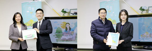 团支书史铮和班长何奕宁代表24111701班分别向与会嘉宾赠送了班级全员签字的漫画作品《园丁》和活动海报,感谢他们对同学们成长的指导与陪伴。