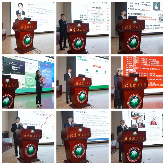 答辩开始后,27位机电先锋候选人按照党员先锋、德学先锋、科创先锋、励志先锋、文体先锋、先锋干部、先锋集体、志愿先锋的顺序做了简要汇报。