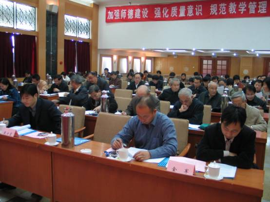 本次会议的中心议题是:加强师德建设,强化质量意识,规范教育管理,建设教学体系,提高教学水平。