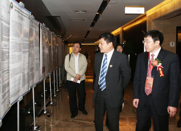 大会开始前邓玉林院长陪同胡海岩校长浏览会议论文Poster展览。