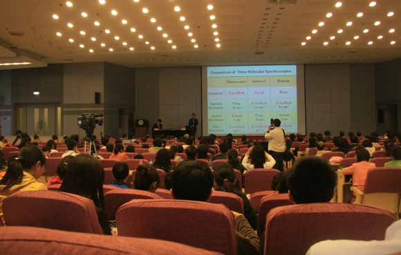 本次会议恰值中国分子光谱会议走过三十年的历程。来自国内三十多家高校和科研单位的300多位代表参加了会议。这是我国在分子光谱学术领域层次最高、学术信息容量最大、参加人数最多的一次盛会。田中群院士、李灿院士、张希院士参加了本次会议。参加会议的还有一大批中国光谱学界的老专家、国外专家和国内知名专家学者。我校作为承办单位之一,承担了会议的筹备工作。