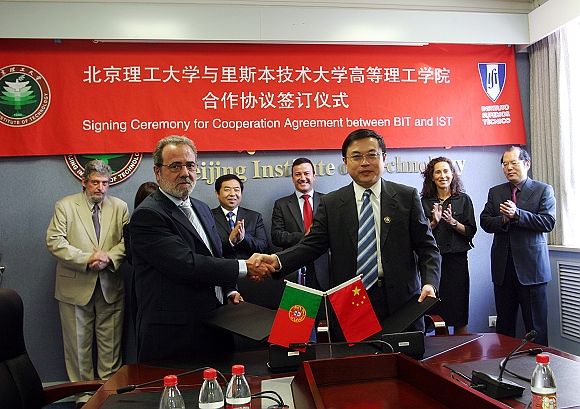 2008年10月16日,我校在主楼二层会议室举行签字仪式,与葡萄牙里斯本技术大学高等理工学院(Instituto Superior Técnico,IST, Universidade Tecnica De Lisboa)正式签订校际合作协议。胡海岩校长与里斯本技术大学高等理工学院校长Carlos Matos Ferreira分别代表学校签订了校际合作协议。签字仪式由国际交流合作处副处长汪滢主持。我校杨树兴副校长、校长助理、科技处处长陈杰、国际交流合作处处长王庆林、里斯本技术大学高等理工学院外事副校长José Santos-Victor、科研副校长助理Maria Teresa Duarte参加了签字仪式及双方会谈。杨树兴副校长首先代表学校向里斯本技术大学高等理工学院校长Carlos Matos Ferreira一行的来访表示欢迎,并介绍了我校的基本情况和国际交流合作情况。